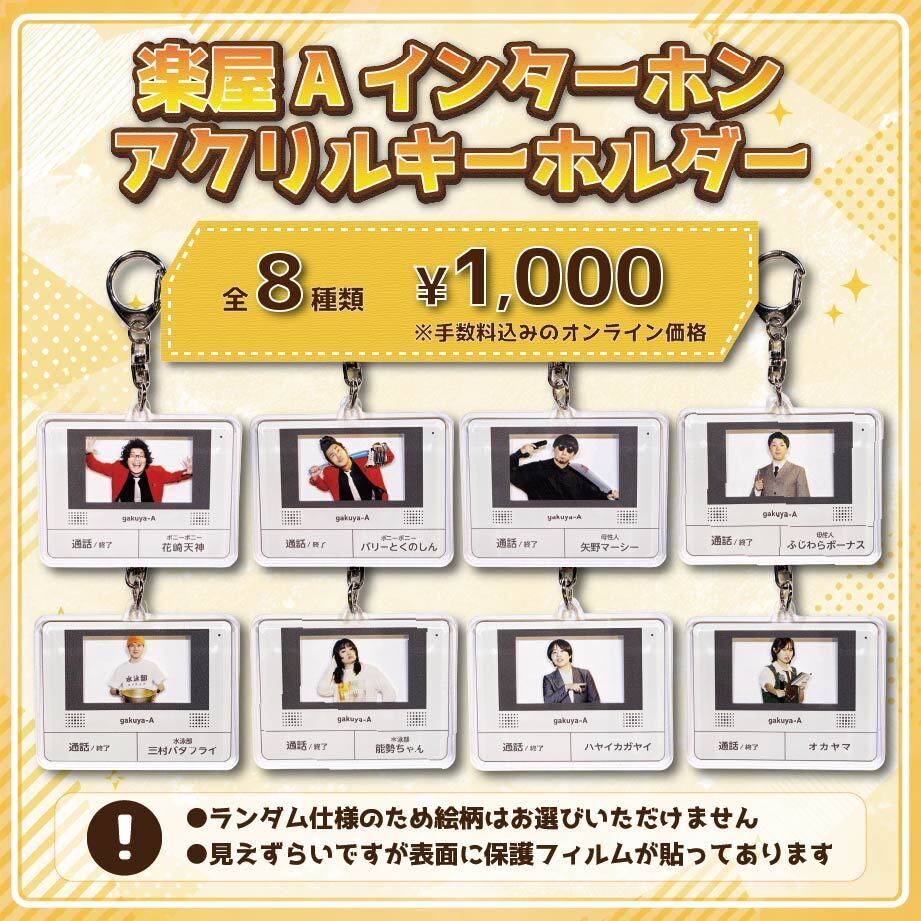 楽屋A出演芸人のインターホンアクリルキーホルダーです。